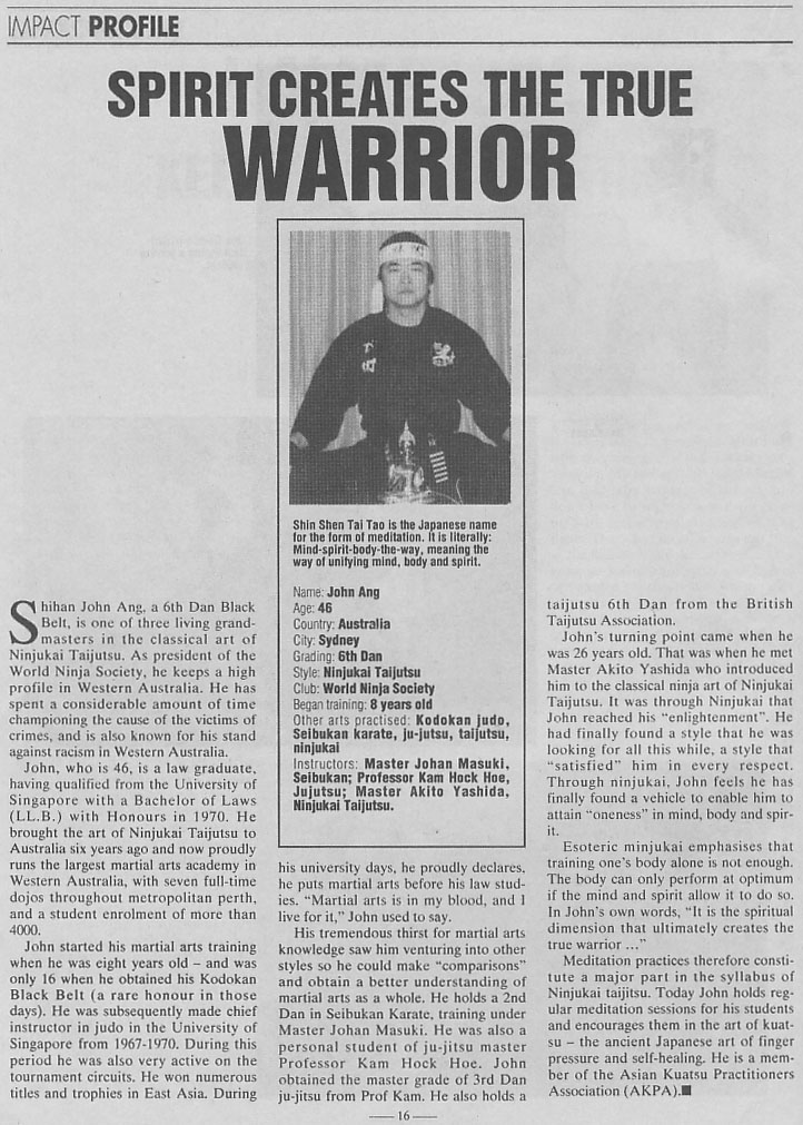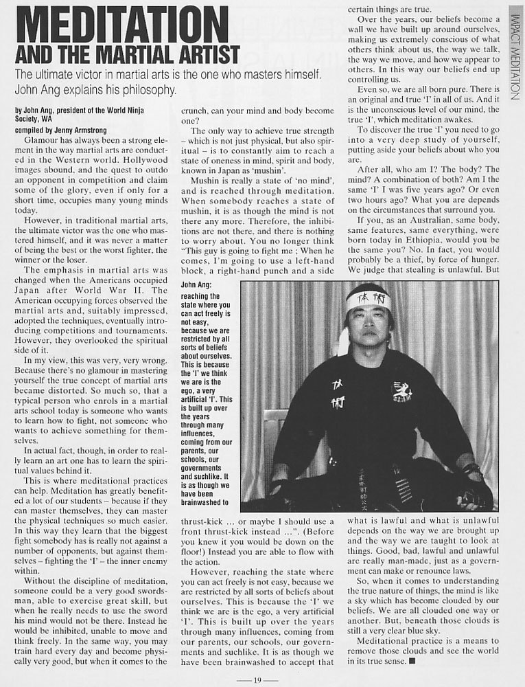 Articles Over the years, Ninjukai Taijutsu has been featured in many prominent publications, such as Blitz Martial Arts Magazine and The West Australian newspaper. Ninjukai continues to keep a high profile, currently featured in the current Best Of Blitz magazine out now, and performed at The Perth Royal Show 2007.